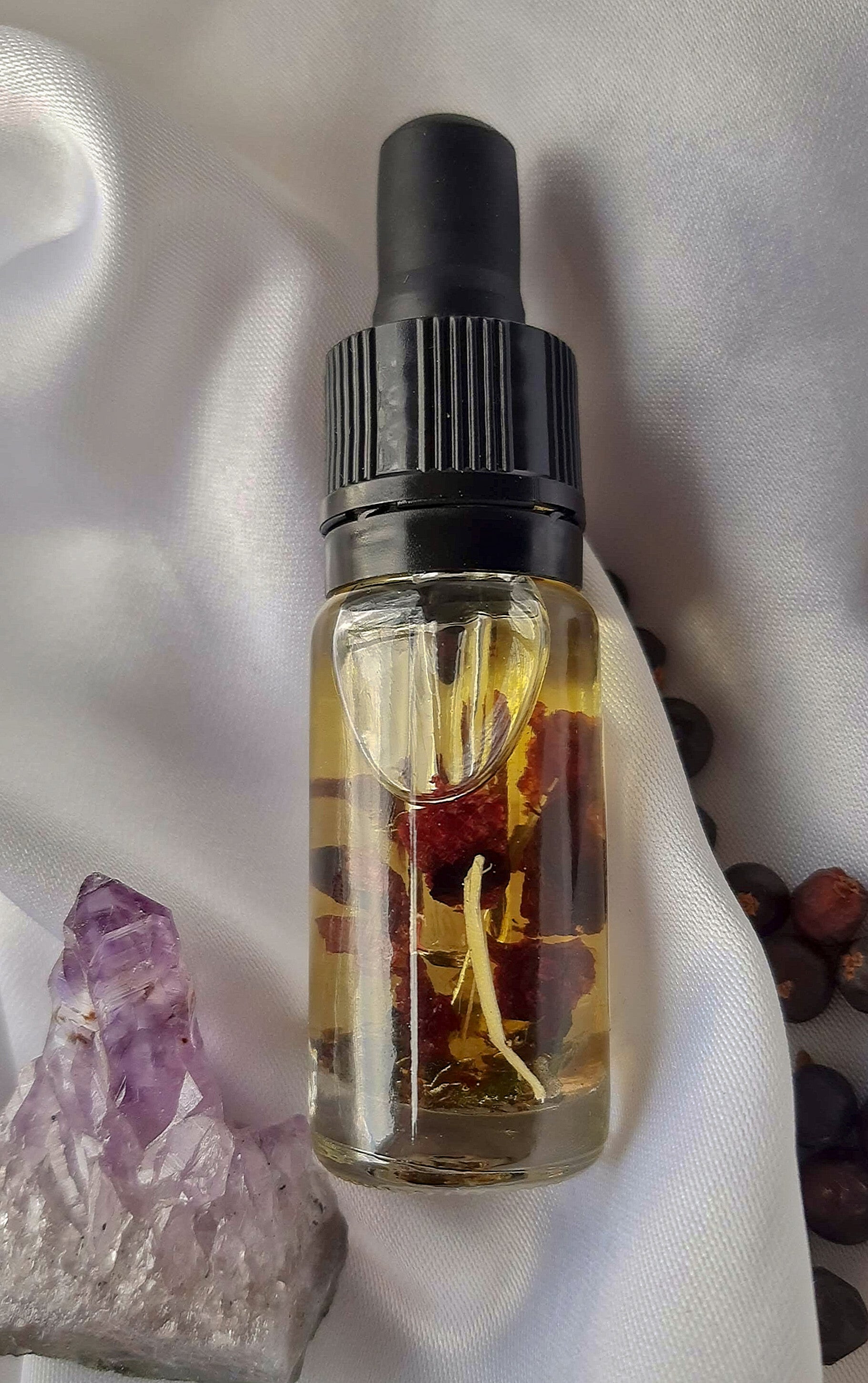 - In elke ritual oil zitten gedroogde kruiden en/of bloemen die bijdragen aan de intentie van de olie.